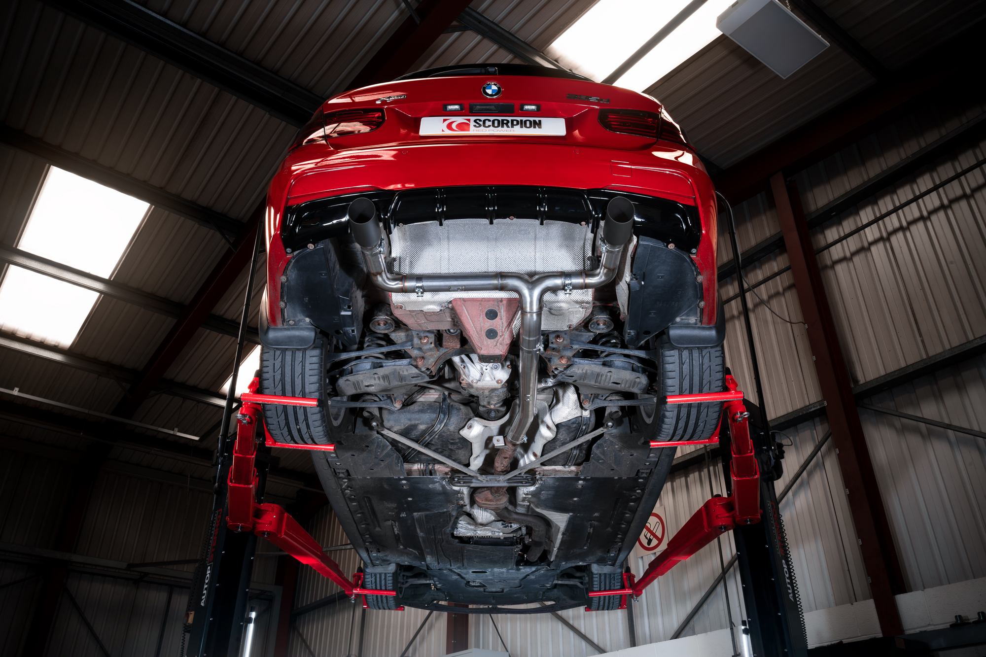 O.E System requires cutting. Requires 340i rear diffuser (BMW 51192291414 or aftermarket copy). Not compatible with AdBlue models. May not be compatible with models that have extra bracing at the rear.